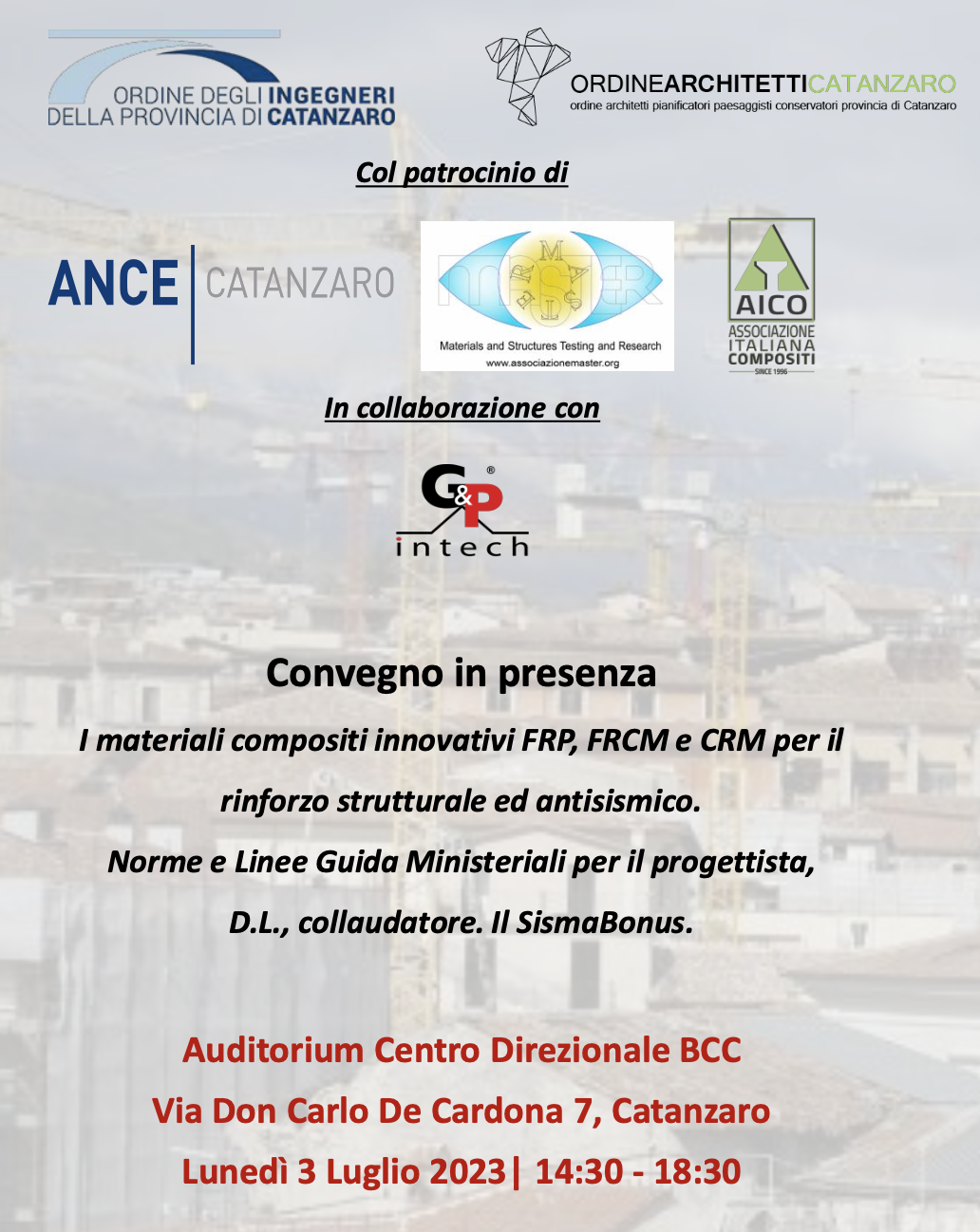 - L’Associazione Italiana dei compositi fibrosi per l'industria della costruzioni, denominata AICO, bandisce, per l’Anno Accademico 2022/2023, un concorso per l'attribuzione di n. 2 Premi di Laurea, di importo pari a Euro 1.000,00 lordi, intitolato “Premio di Laurea AICO”, per la migliore tesi di Laurea Magistrale sui temi dei materiali compositi nell’ingegneria civile, destinato a laureati che abbiano discusso la tesi nelle Università Italiane nell’Anno Accademico 2022-2023.
